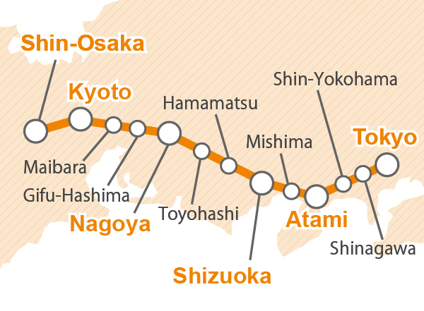 This route connects major cities of Japan and sightseeing places between Tokyo and Shin-Osaka.