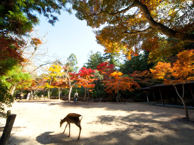 10 min. by ferry from Miyajimaguchi Station, which takes 25 min. by JR Sanin Main Line from Hiroshima Station