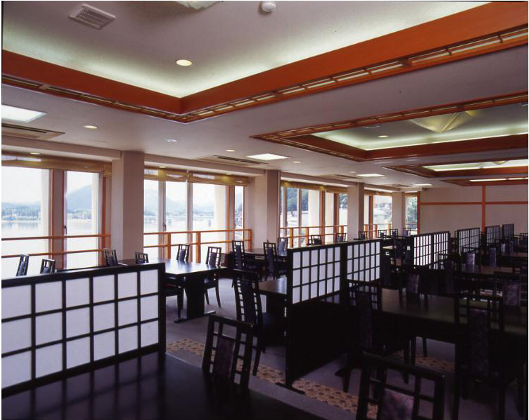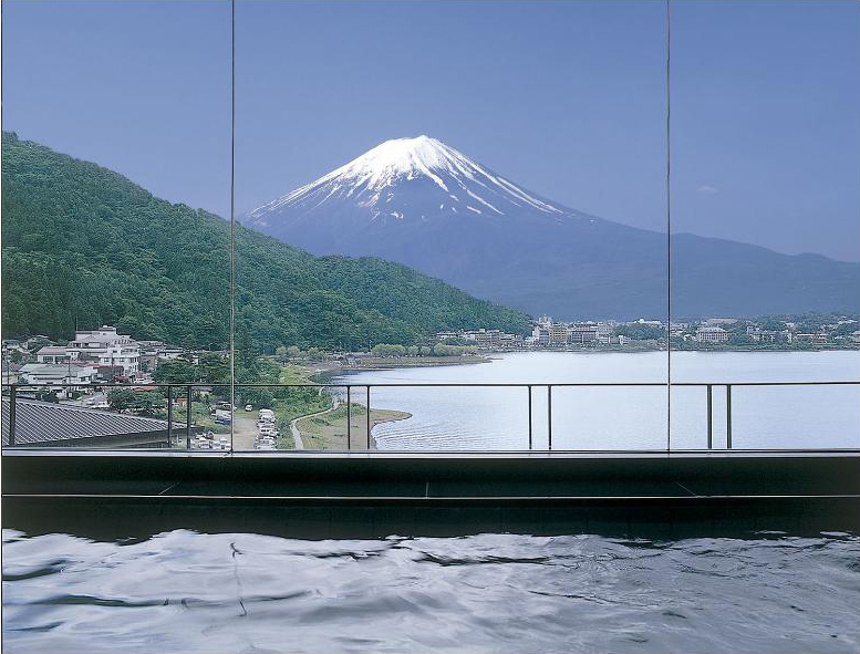Hot spring ryokan with a view of Mt. Fuji and Lake Kawaguchi from all guestrooms, large communal bath, open-air bath, restaurant and garden. Reversed Mt. Fuji (reflection of Mt. Fuji on the lake) can be seen if the weather is fine.