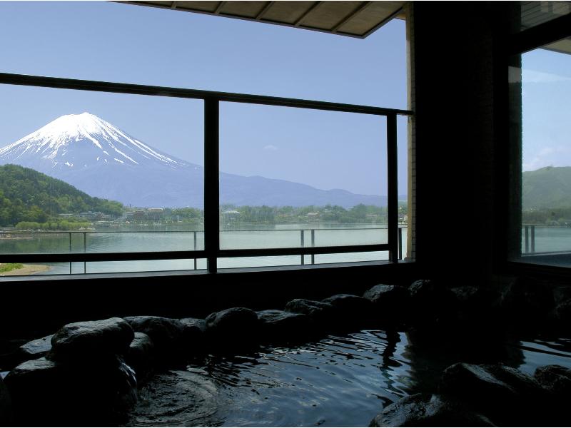 Traditional Japanese ryokan with a view of Mt. Fuji and Lake Kawaguchi from all guestrooms, large communal bath and open-air bath. Kaiseki cuisine prepared with seasonal products awaits you.
