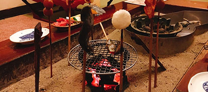 This cuisine is named after the old legend that fleeing Heike warriors surrounded fire and baked the foods that they got in the mountain and river. You can sit around a fire pit and enjoy the cuisine.