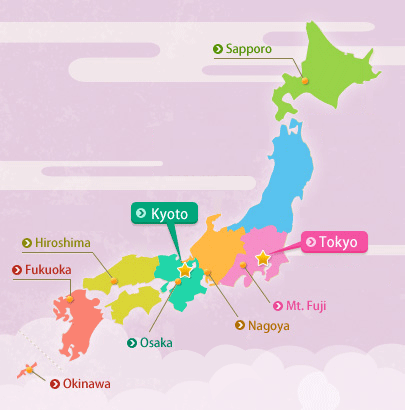 Sapporo Tokyo Kyoto Mt.Fuji Hiroshima Fukuoka Nagoya Osaka Okinawa Sapporo Sendai Tokyo Kyoto Mt.Fuji Hakuba Hiroshima Fukuoka Nagoya Osaka Okinawa