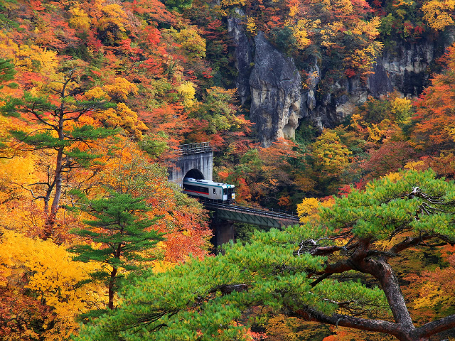 13 min. by bus from JR Naruko Onsen Station to Naruko-kyo Nakayamadairaguchi Mae bus stop